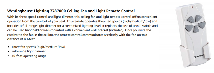 | Included Components | ceiling fan remote controls |