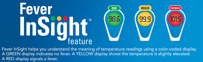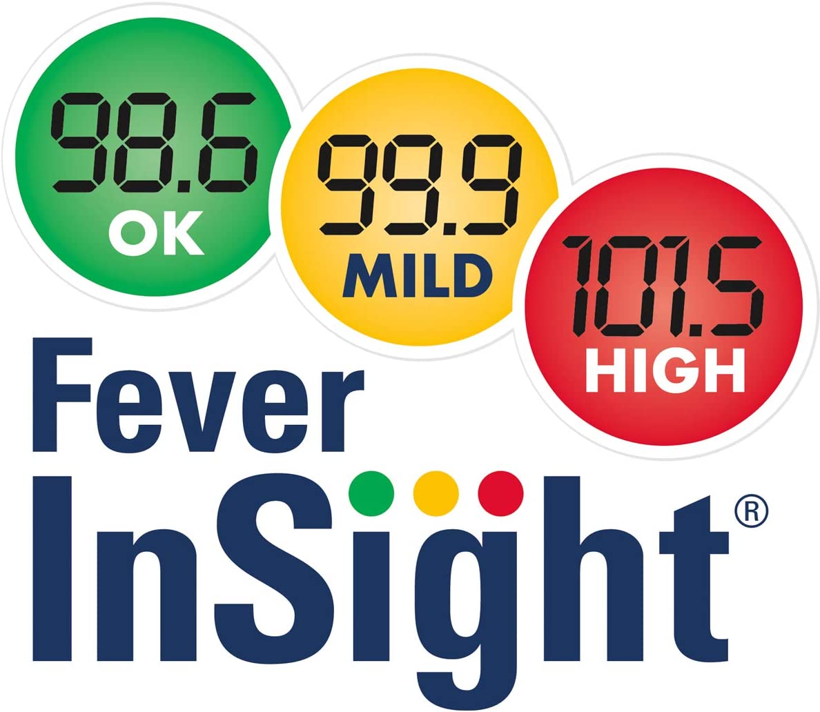• EASY TO READ – The color coded Fever InSight helps get temperature readings at a glance, and understand them easily. A green display suggests a normal temperature, yellow signifies an elevated temperature and a red display indicates a high temperature