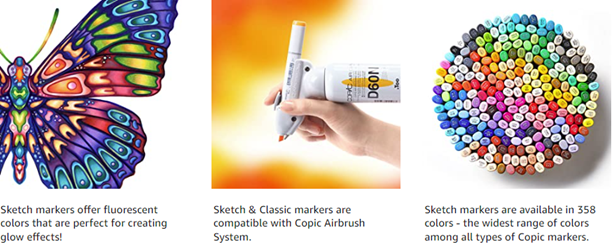 Copic Sketch has been a popular working tool around the world in many fields such as design, illustration and fine art. All Copic markers are made in Japan with rigorous quality control.