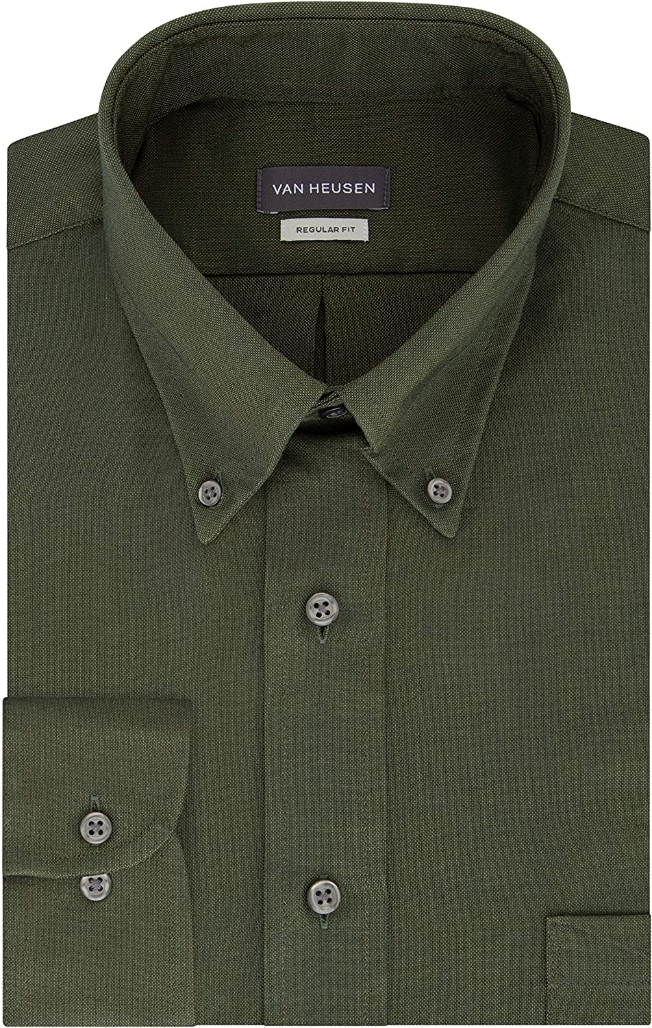 Van Heusen Men's Dress Shirt Regular Fit Oxford Solid Buttondown Collar
