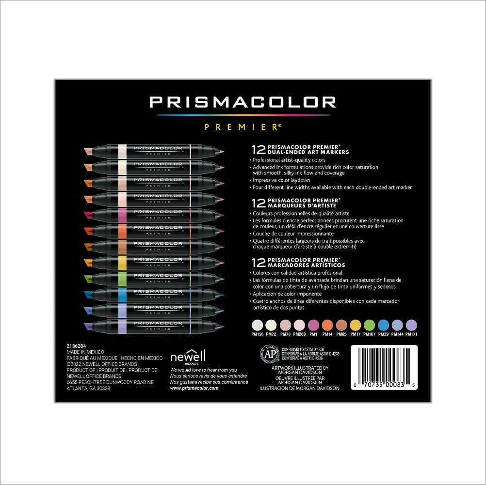 Lay down precisely the marks you want to make in 12 Manga-perfect colors with Prismacolor Premier Double-Ended Art Markers. The dual-ended design features a fine tip on one end and a large chisel on the other. This allows you to quickly flip between precision and coverage. The ink is richly saturated and designed for an effortlessly smooth flow while a single source of ink ensures color consistency at both ends. And the advanced, alcohol-based pigment resists fading so your creations will endure.