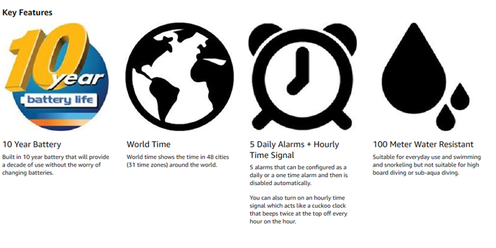 Casio Digital AE-1000W-1AV Illuminator for men. Featuring a 10-year battery with illuminator, world time & 5 alarms. With a 45mm resin case (13.8mm thickness) and water resistance of 100-M / 10 ATM. CasioWith the launch of its first watch in November 1974, Casio entered the wristwatch market at a time when the watch industry had just discovered digital technology. As a company with cutting-edge electronic technology developed for pocket calculators, Casio entered this field confident that it could develop timepieces that would lead the market.Today, Casio is focusing its efforts on solar-powered radio-controlled watches: the built-in solar battery eliminates the nuisance of replacing batteries, atomic timekeeping means the users never have to reset the time. Recently, Casio launched a series of Bluetooth watches that sync to the users cell phone to automatically update the time. Casio is always moving time forward.