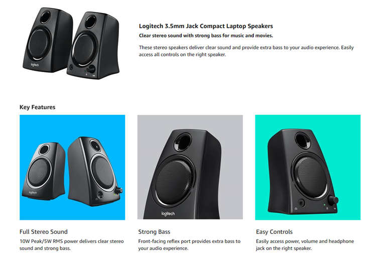 With convenient controls and an easy setup, These compact speakers make getting rich stereo sound simple. 5 watts of total power deliver clear stereo sound for your music and movies. Plus, the front-facing reflex port provides powerful bass to your audio experience. Easy-to-use controls are located on the right speaker to provide quick access to power and volume. Speakers connect to your laptop, computer, smartphone, tablet and more with a standard 3.5mm plug. Refer instruction manual for troubleshooting steps.