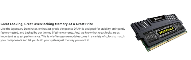 Corsair Vengeance 8 GB (2 x 4 GB) DDR3 1600 MHz PC3 12800 240-Pin DDR3 Dual Channel Memory Kit 1.5V (CMZ8GX3M2A1600C9)