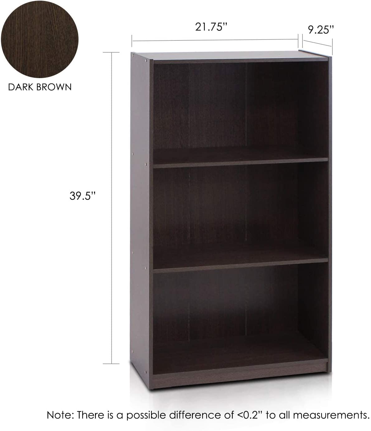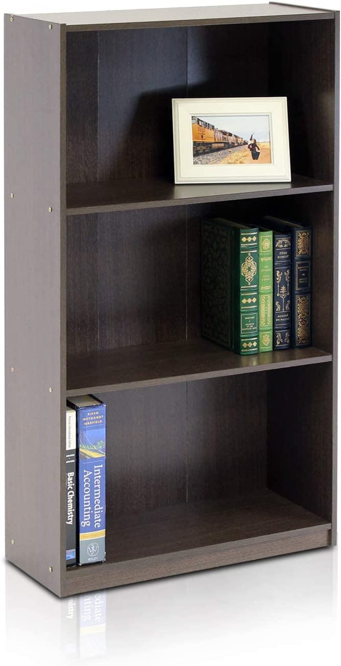 Furinno Basic 3-Tier Bookcase Storage Shelves, Espresso