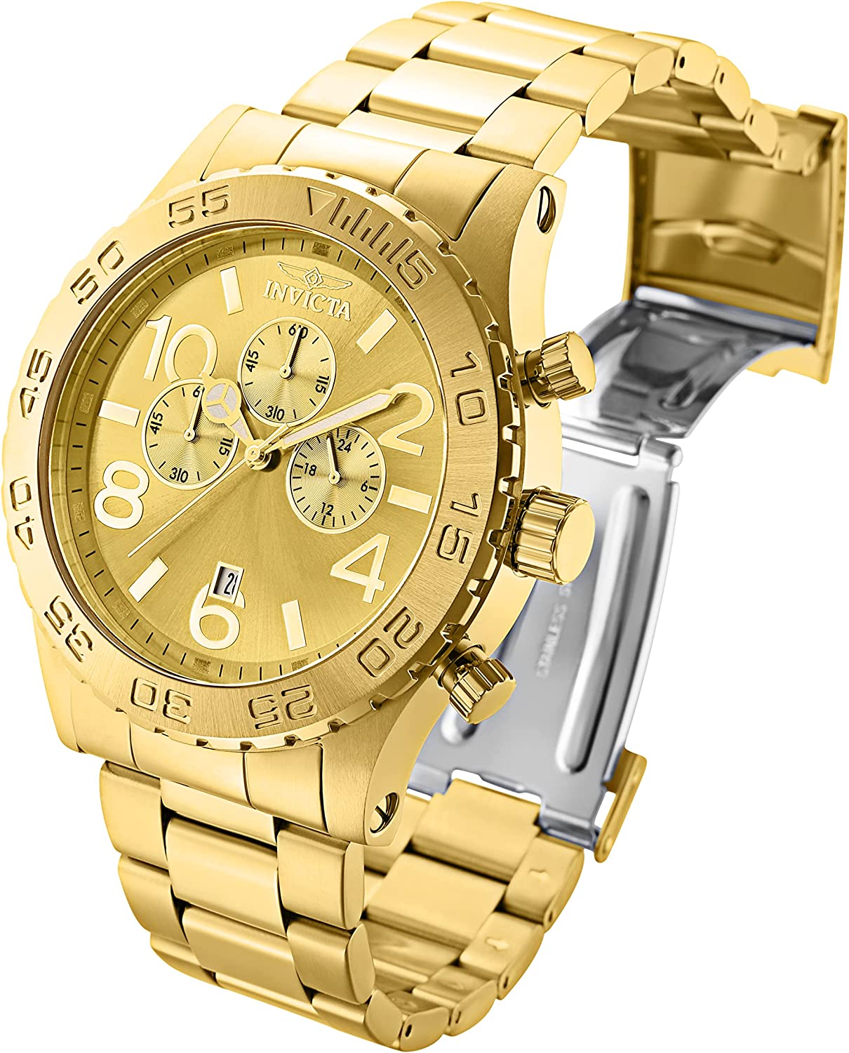Invicta Men's 1270 Specialty Chronograph Gold Dial 18k Gold Ion-Plated Stainless Steel Watch