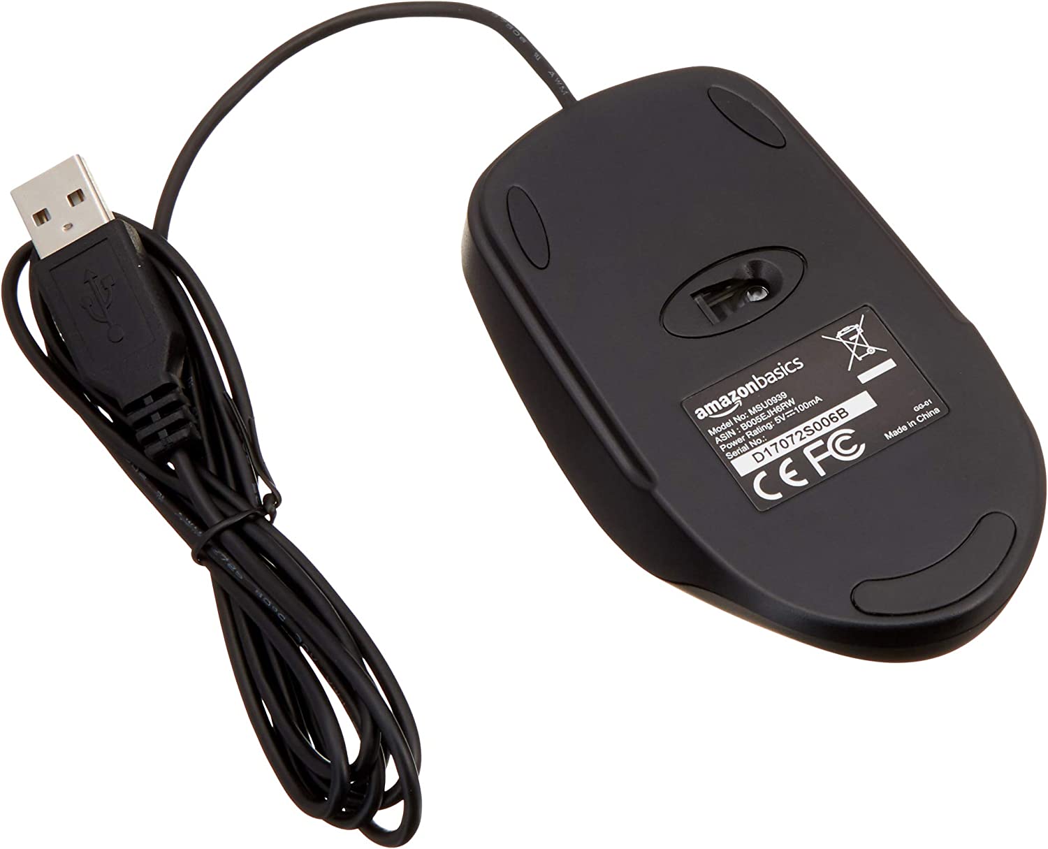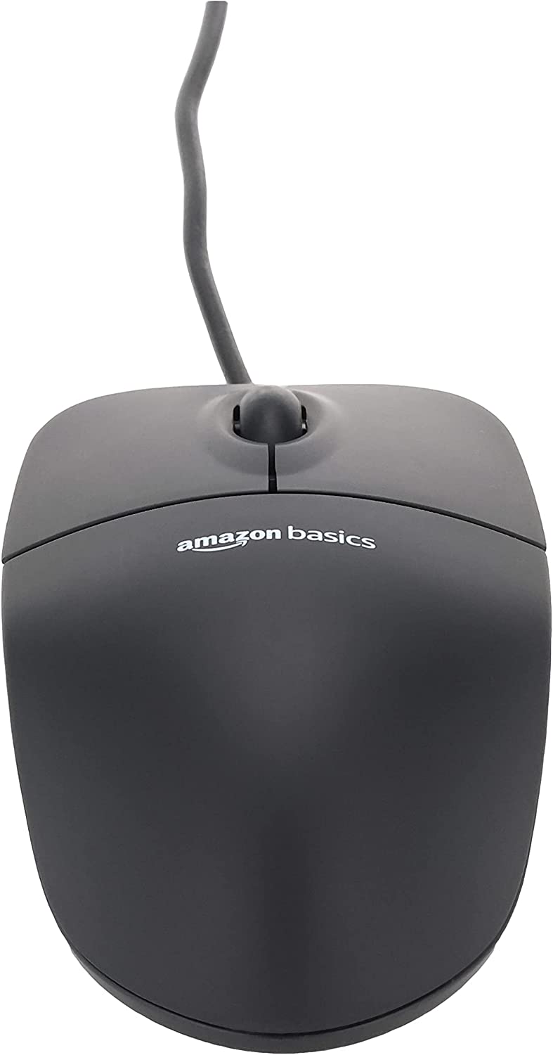 Amazon Basics 3-Button Wired USB Computer Mouse, Black