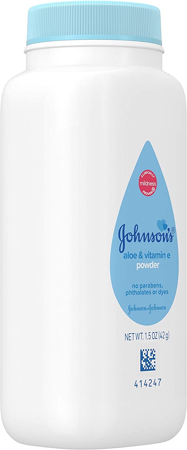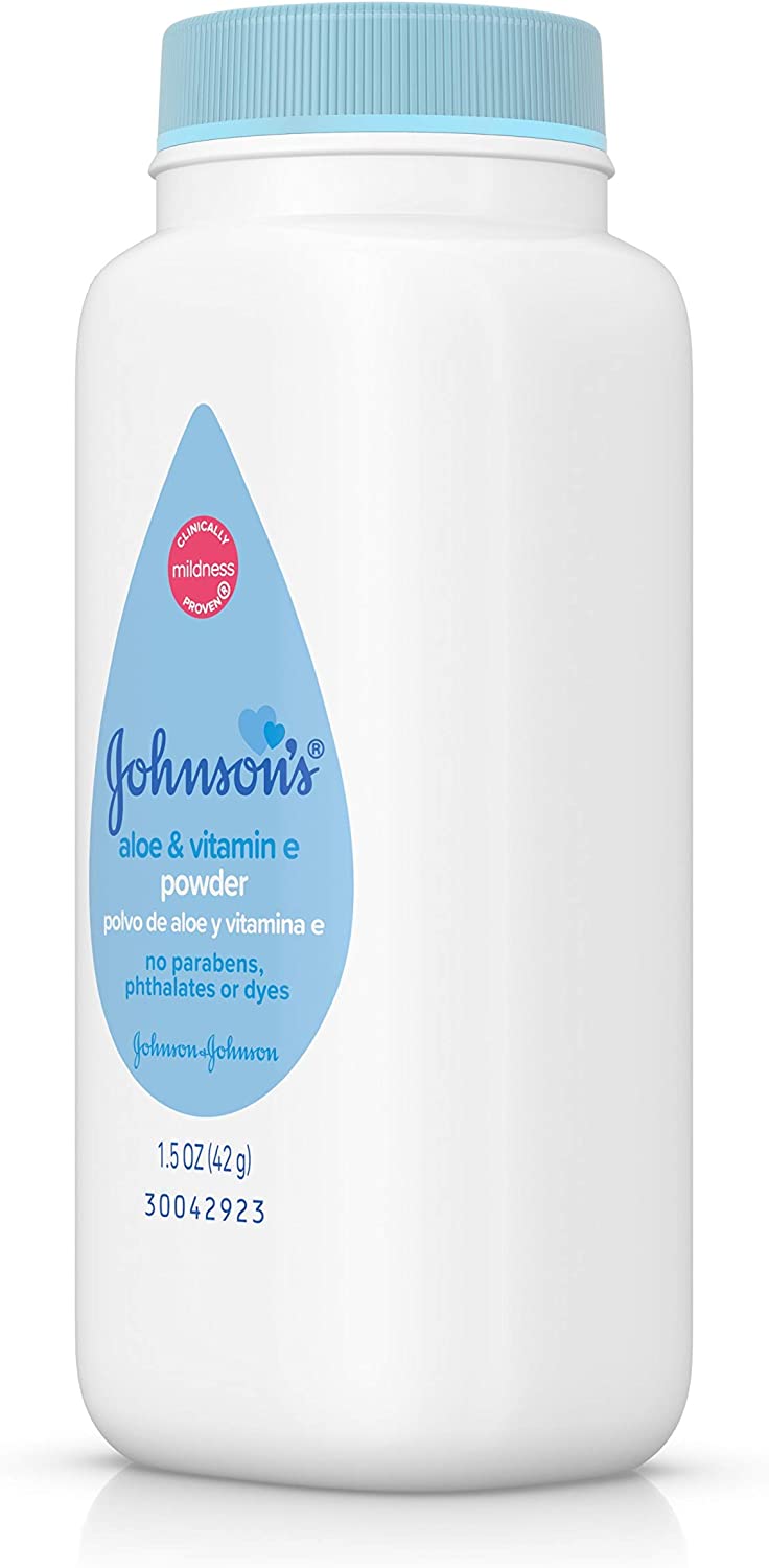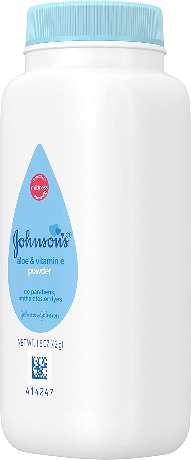 1.5-ounces of Johnson's baby powder with naturally derived cornstarch, aloe, and vitamin E provides a gentle way to soothe your baby's skin and leave it feeling soft and smooth
