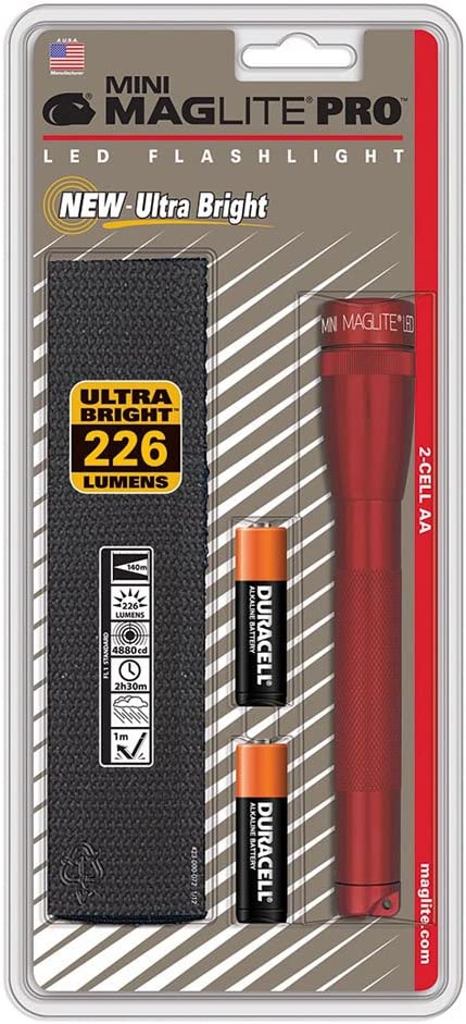 The red MAGLITE 332-Lumen Mini LED Pro Flashlight was introduced more than a quarter-century ago. This mini flashlight has that same classic simplicity of function. It features a state of the art LED light engine for unprecedented performance. This model is ideal for tactical applications.