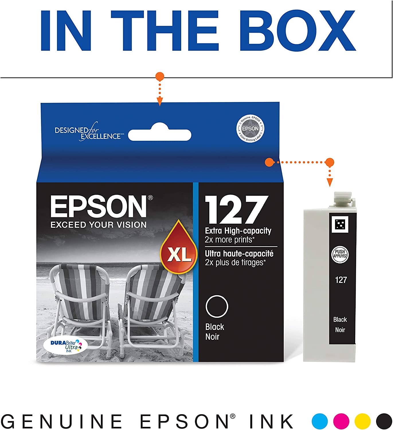DuraBrite ink is built to last a long time resists fading and provides bold colors that are vivid and photo realistic. It’s Smudge , fade and water resistant prints look brilliant on both plain and glossy photo papers and it has resists light for up to 80 years. Excellent for double sided printing because inks don't bleed through and has convenient individual ink cartridges.