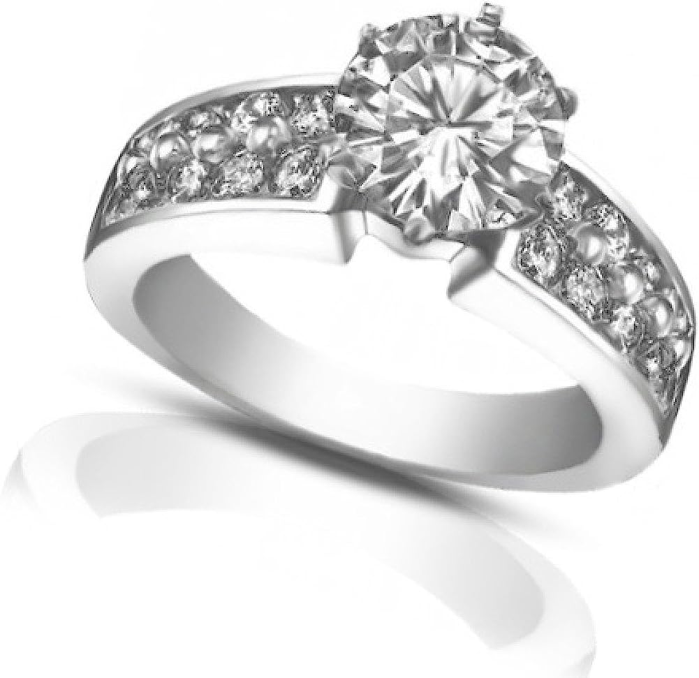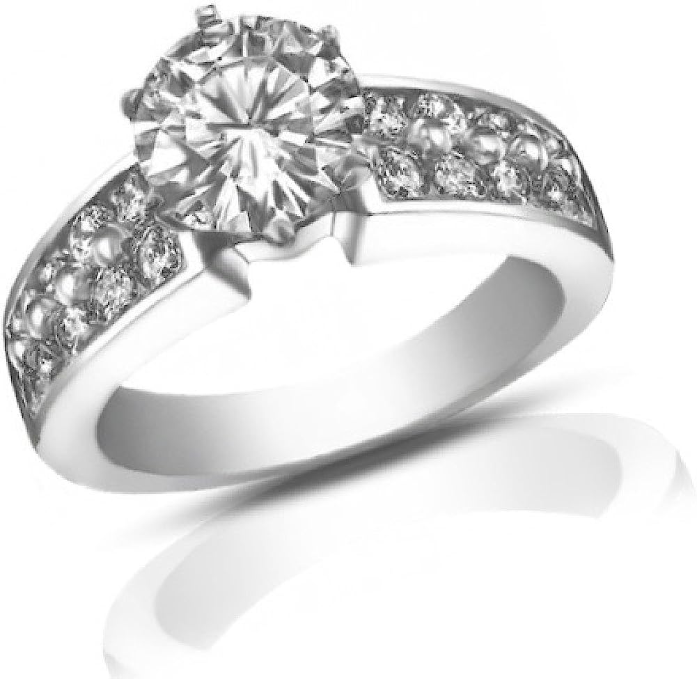 Madina Jewelry 1.90 ct Ladies Round Cut Diamond Semi Mount Ring in Pave Setting in 14 kt White Gold