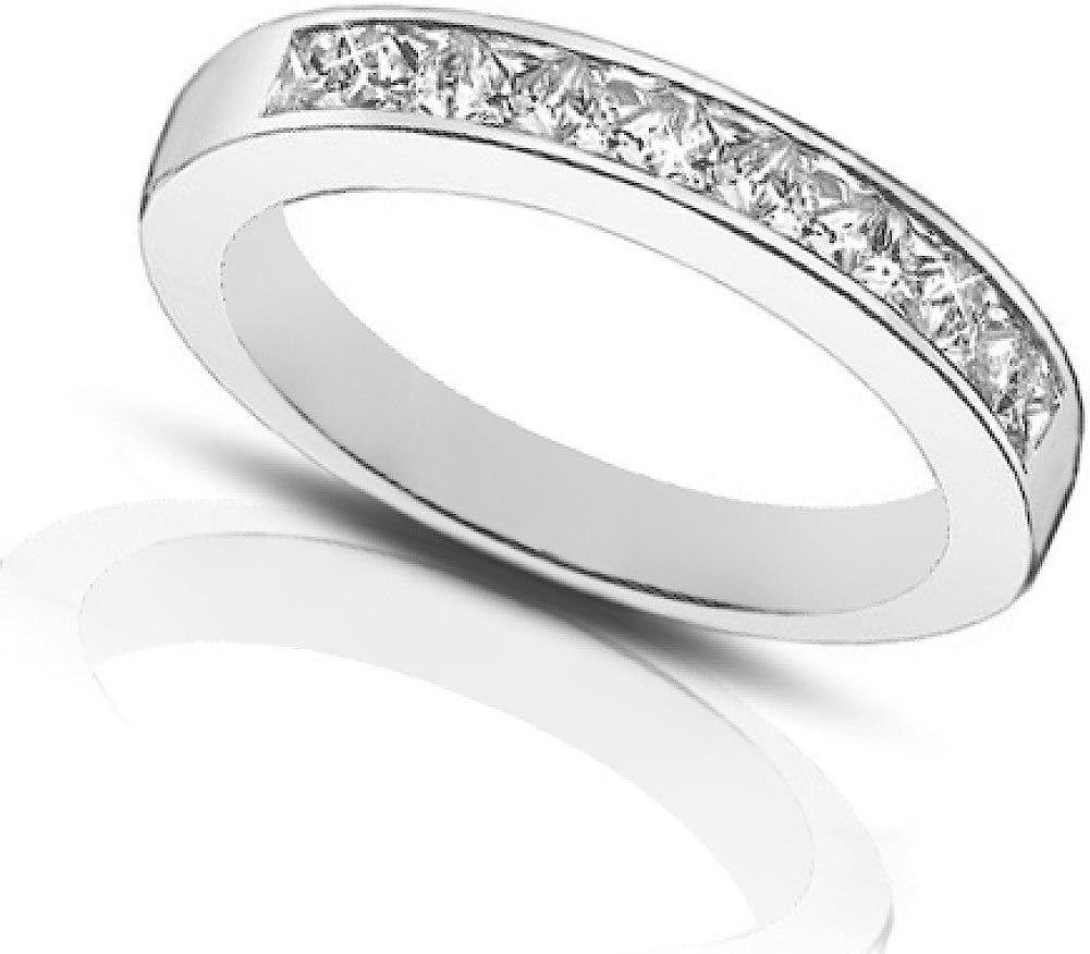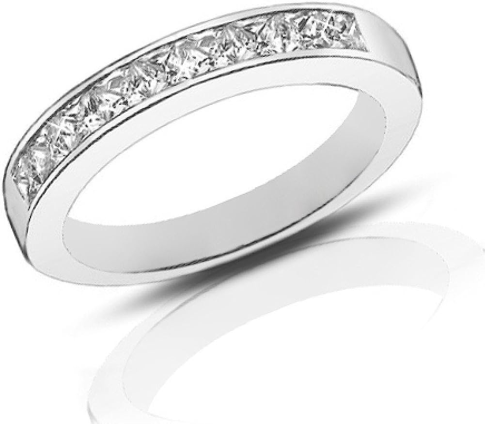 Madina Jewelry 1.00 Ct Ladies Princess Cut Diamond Wedding Band Ring in 18 kt White Gold