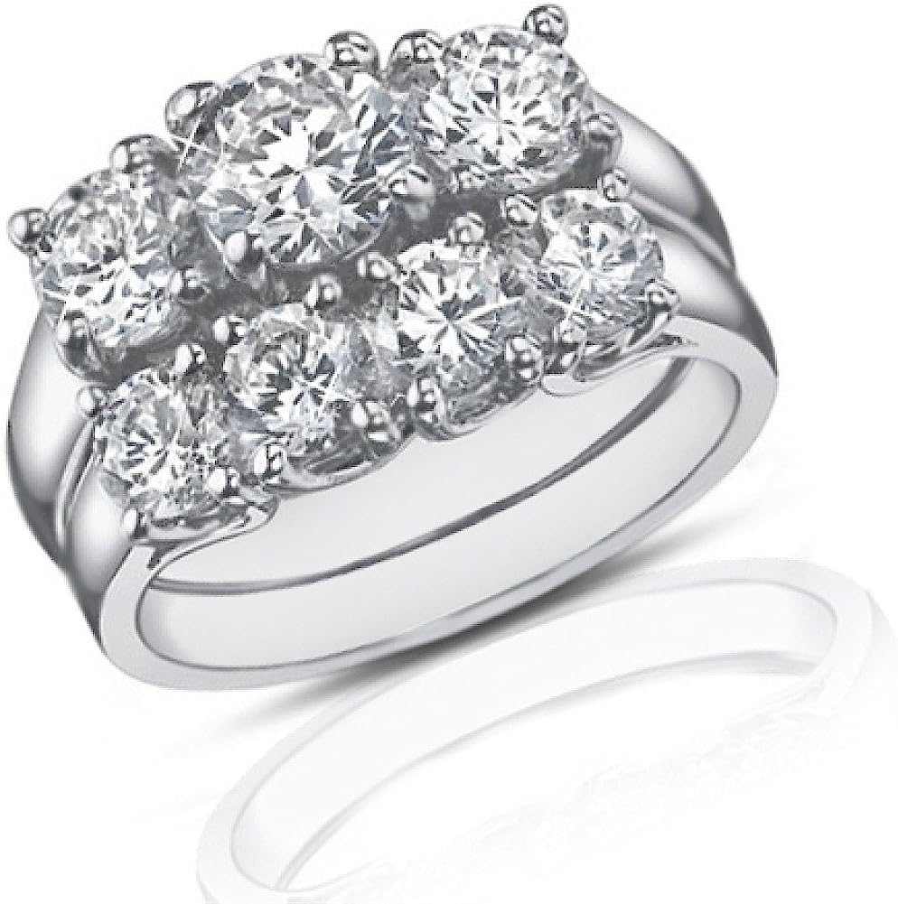 Madina Jewelry 2.25 Ct Three Stone Round Diamond Engagement Ring with Wedding Band in Platinum