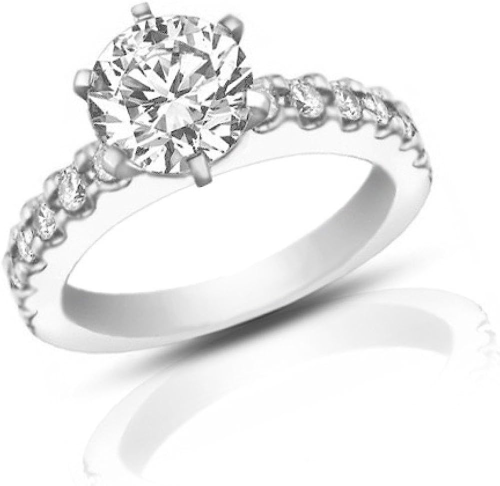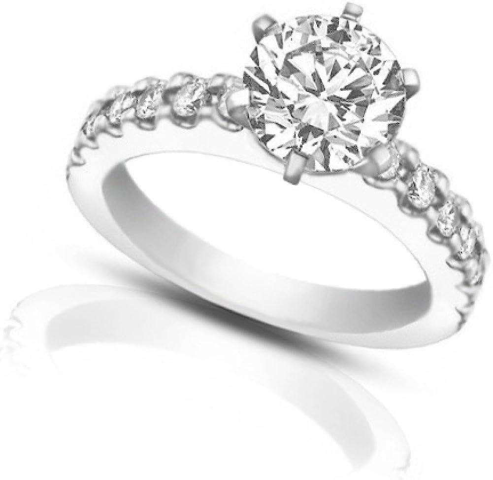 Madina Jewelry 1.45 Ct Round Cut Diamond Engagement Ring with Accented Diamonds in Platinum