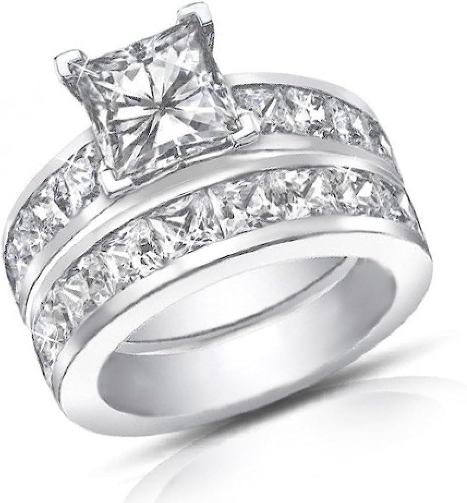 Madina Jewelry 4.50 Ct Princess Cut Diamond Engagement Ring Set in Channel Setting in Platinum
