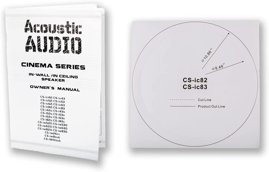 WHAT'S IN THE BOX - 5 Acoustic Audio by Goldwood CS-IC83 speakers, removeable grills, cut-out templates, instruction manual. Use for home theater surround sound, whole house audio systems, business or retail installations