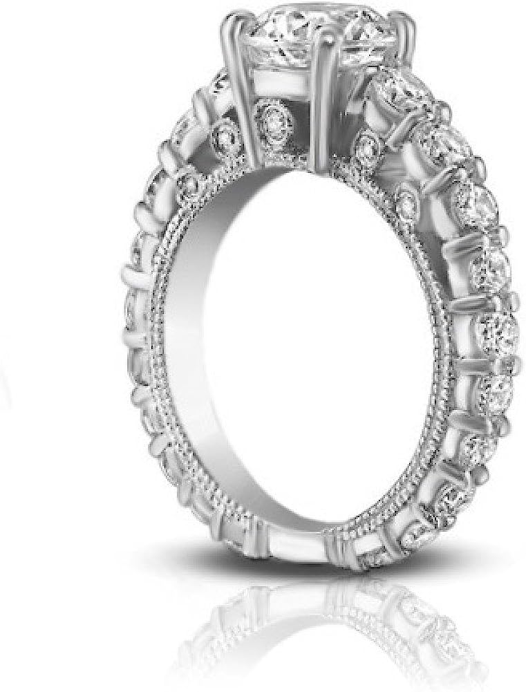 Madina Jewelry 1.90 ct Ladies Round Cut Diamond Semi Mount Ring in Pave Setting in 14 kt White Gold