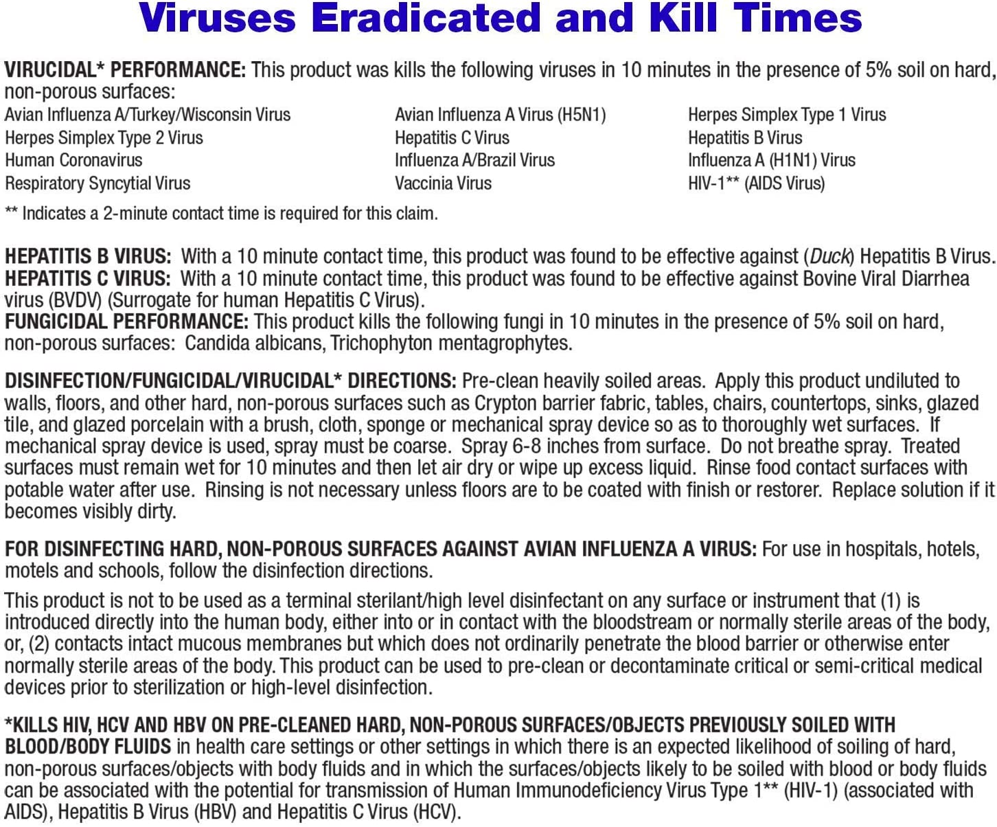 • A Powerful Disinfectant: strong enough for Industrial and Hospital Grade disinfecting but safe to use in your own Home. This spray removes bacteria and viruses, including MRSA viruses, H1N1, H5N1 Bird Flu Viruses, and many more. *See Label for Full List
