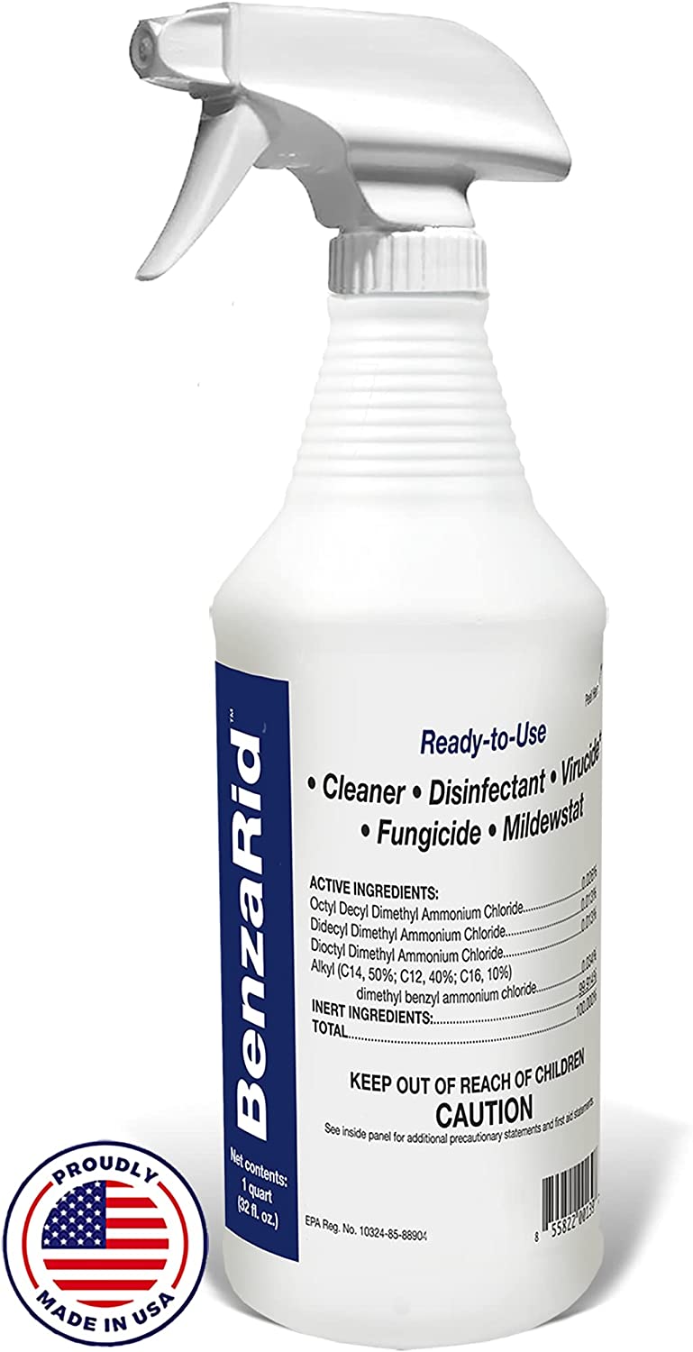 BenzaRid Professional Disinfectant 32oz | Medical Grade Sanitizer & Virucide, Eradicates MRSA, H1N1, H5N1 Viruses, Norovirus, Avian Flu, Staphylococcus, No Rinse, No Wipe, EPA Registered