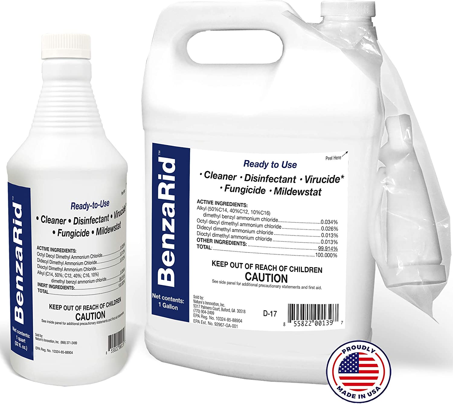 • BenzaRid Disinfectant is an Industrial Virucide, Mold Eliminator, and mildew stat. BenzaRid is used by professionals to remediate Flood/Water Damage to walls, floors, and ceilings.