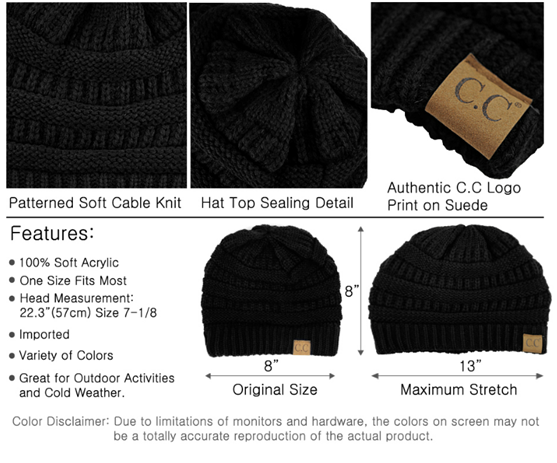 C.C Trendy Warm Chunky Soft Stretch Cable Knit Beanie Skully