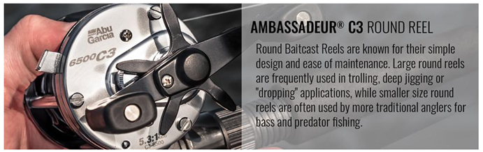 Combining smooth drag with a durable, finely crafted design, the Abu Garcia C3-5500 Ambassadeur Baitcast Fishing Reel is an ideal choice for devoted anglers. This fishing reel's Carbon Matrix drag system offers smooth and consistent drag across the entire drag range, giving you the precision and power you need to subdue the most tenacious gamefish. It is also engineered for precise casting and line lay. The reel's six-pin centrifugal brake applies consistent pressure throughout the cast for superior control, while its synchronized level wind system ensures an even line lay and an effortless retrieve. And thanks to its extended bent cranking handle and power knob, this baitcasting reel offers the powerful, even reeling action and leverage that hard-fighting fish demand. Brute strength meets refined style. The heritage continues with the new C3, designed to meet the demands of the most hardcore angler.