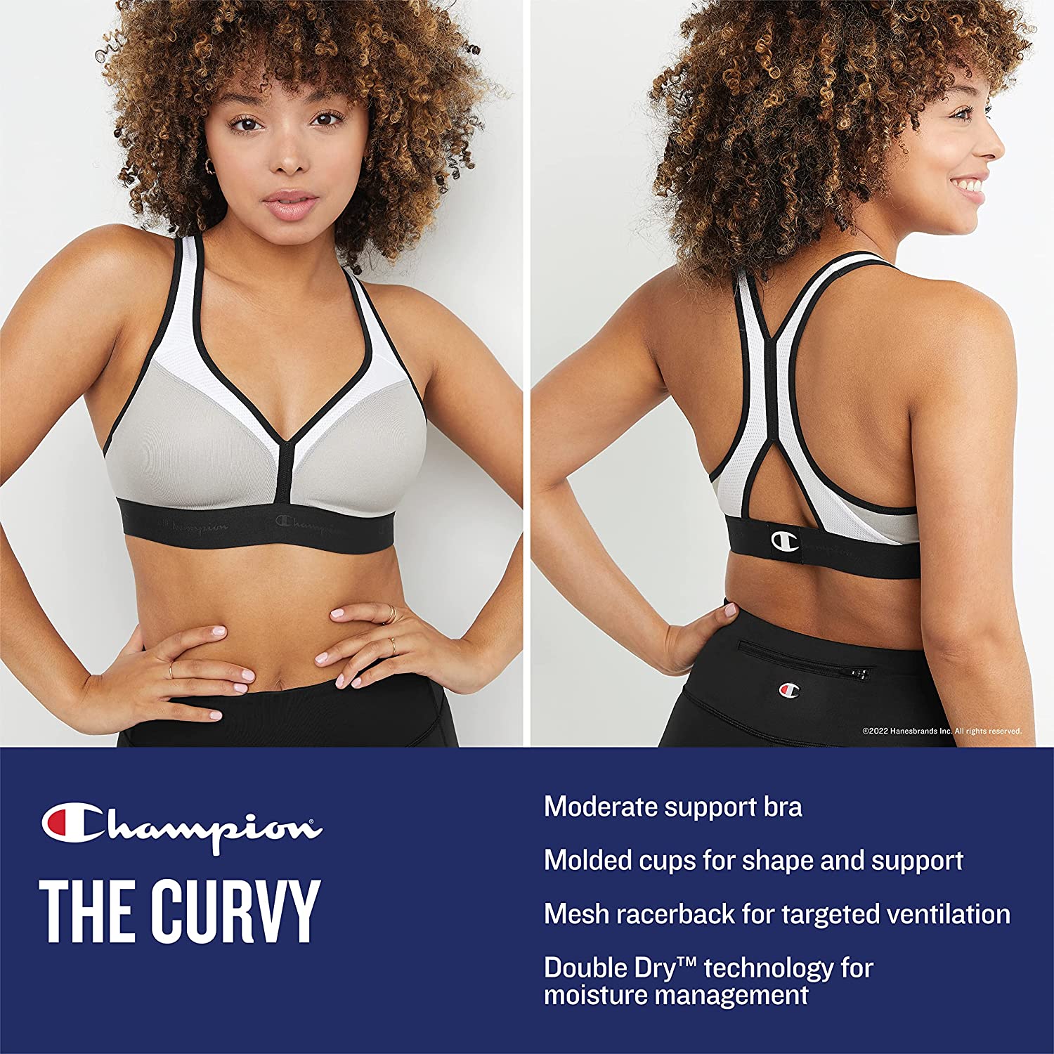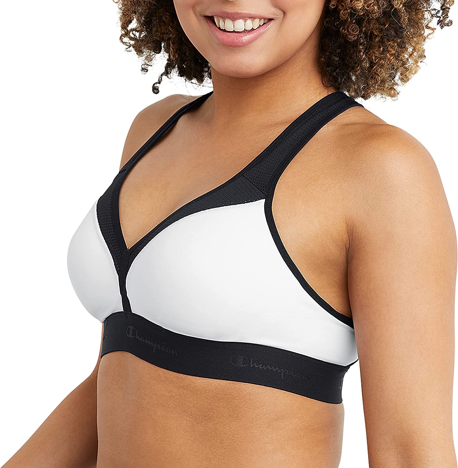 • THE CURVY BRA - Classic racerback silhouette with a V-neckline offers a trendy spin on your workout wardrobe. Pair with your best Champion leggings for a sporty look all your own.