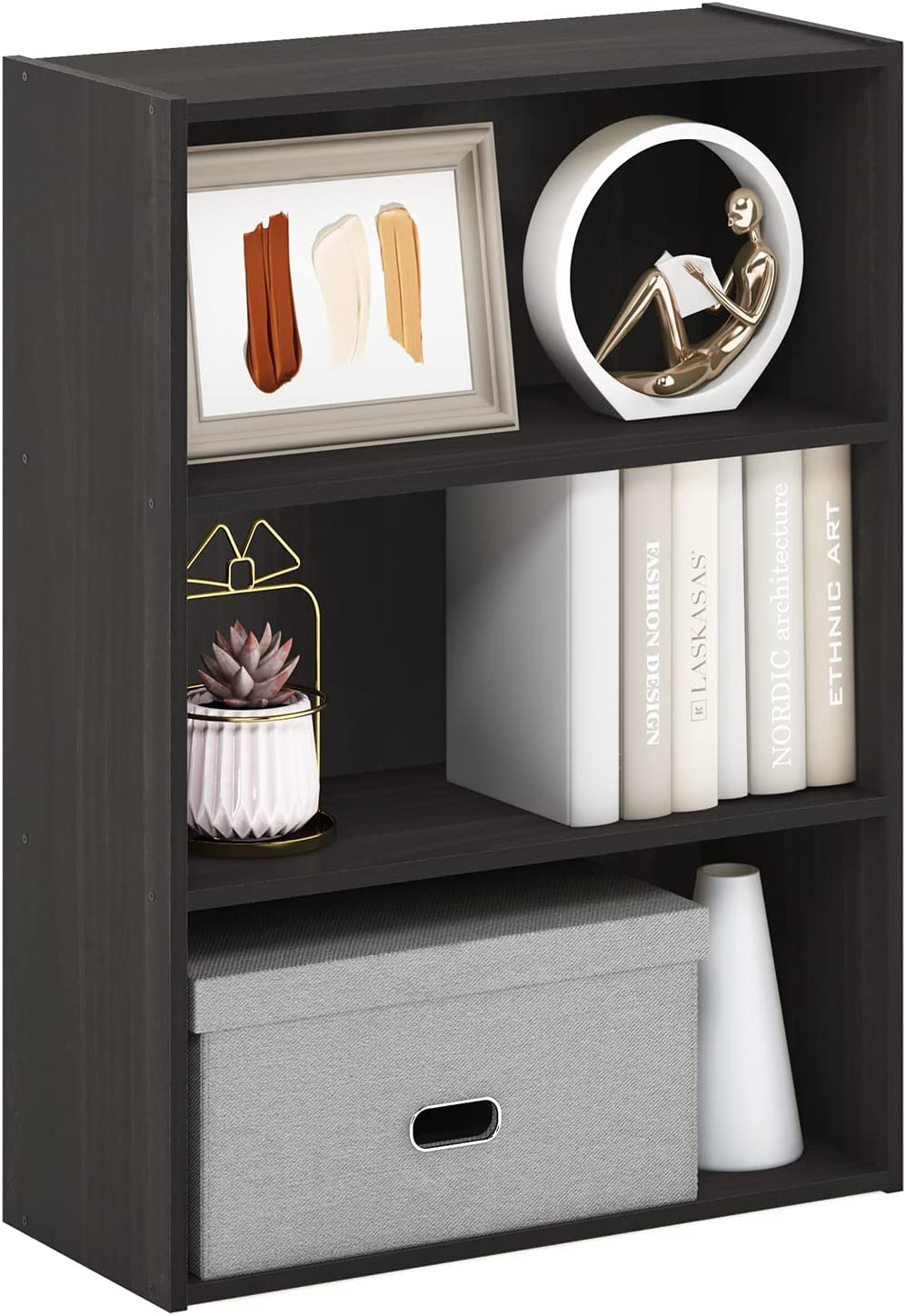 Furinno Pasir 3-Tier Open Shelf Bookcase, Espresso