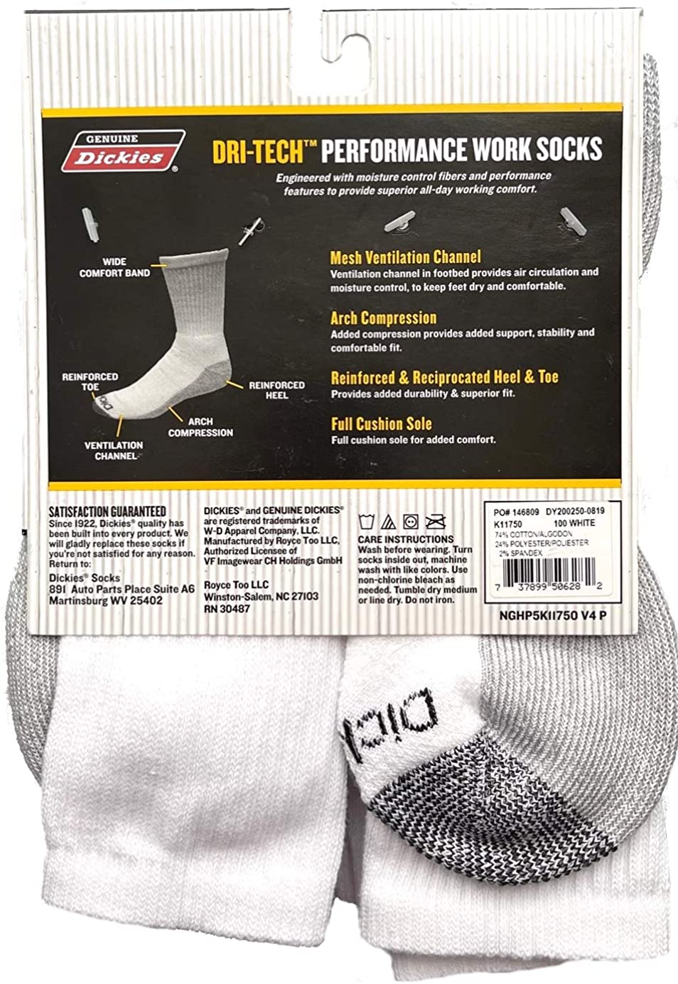 Dickies Genuine Men's 5-pair Crew Style Work Socks - White with Grey (6-12)