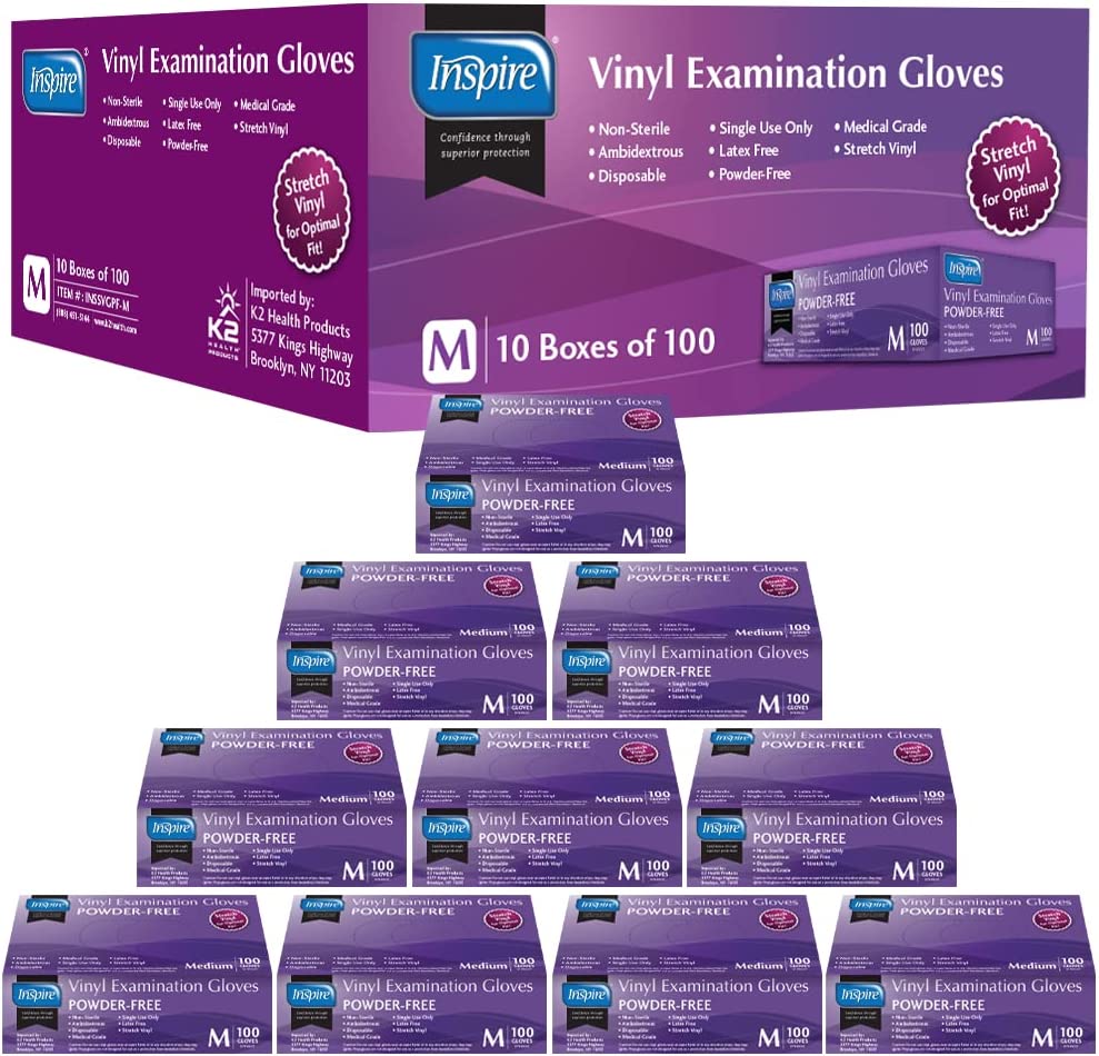PRE-COVID QUALTY: Remember when disposable gloves were strong, rip free and durable? These Inspire Gloves are the Original Quality. Say NO to cheap gloves that do NOT offer adequate protection. Inspire Vinyl gloves offer the security and strength demanded by today's professionals. Also see our Inspire Nitrile Gloves and a full selection of Inspire gloves disposable latex free, latex gloves , rubber gloves and medical gloves.