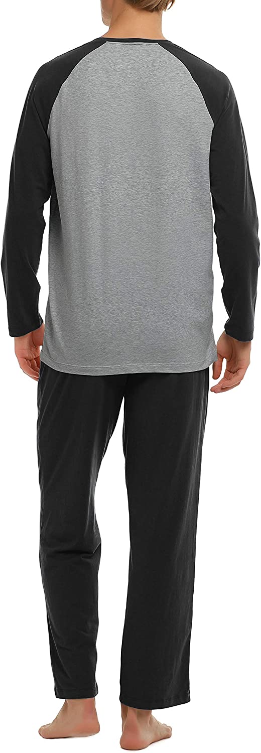 DAVID ARCHY Men's Cotton Raglan Sleepwear Long Sleeve Top & Bottom Pajama Lounge Set