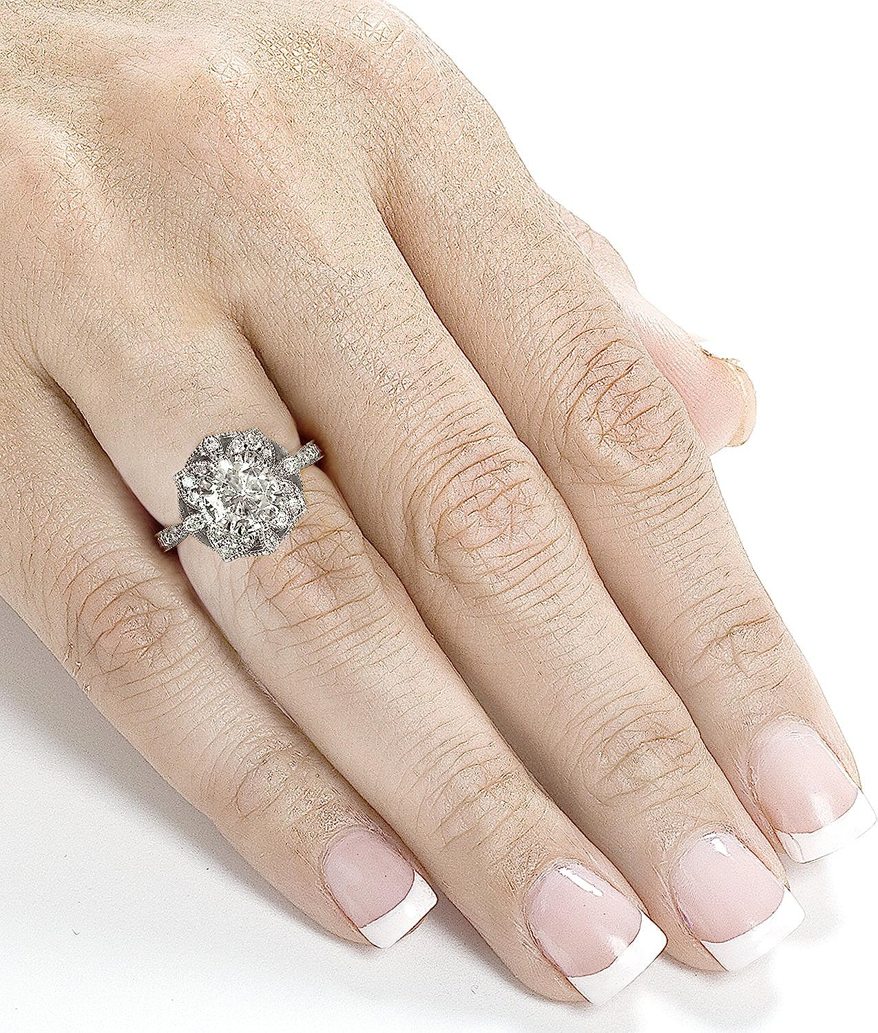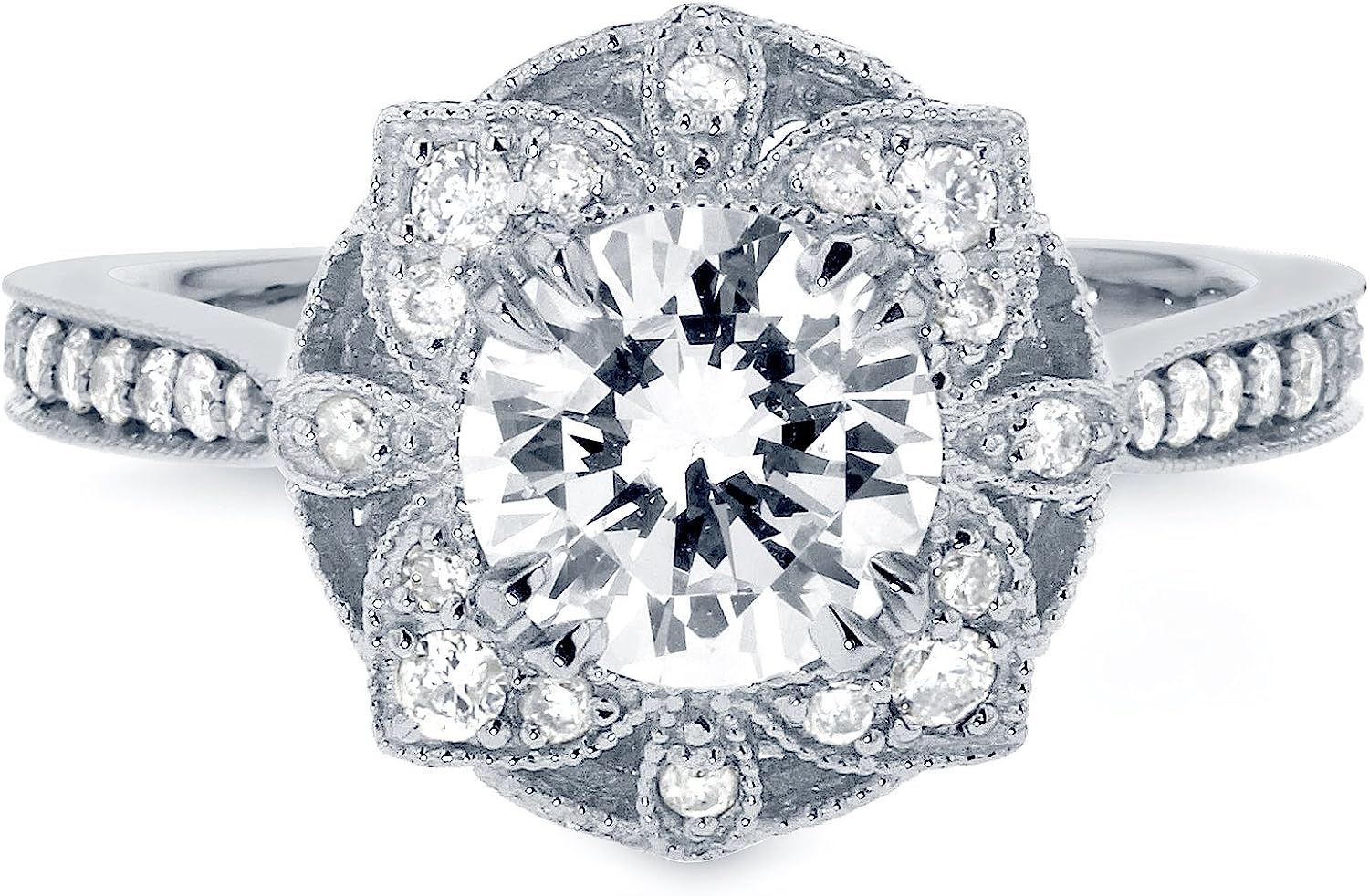 Kobelli Antique Style Floral Diamond Engagement Ring 1 1/4 CTW in 14k White Gold