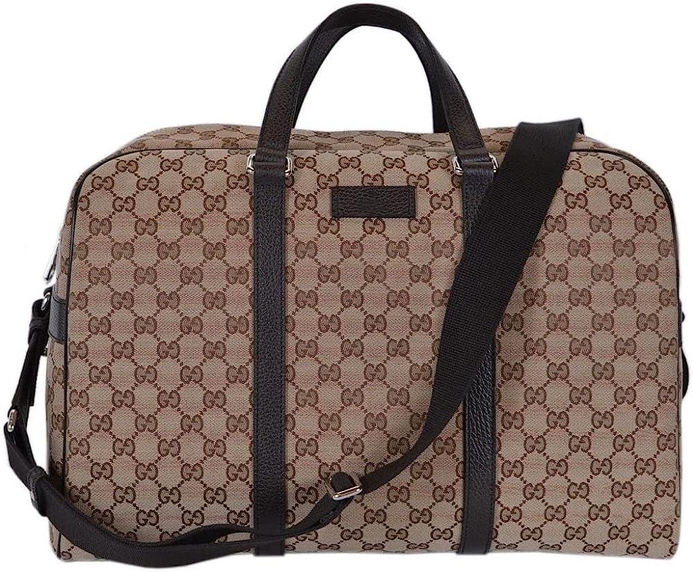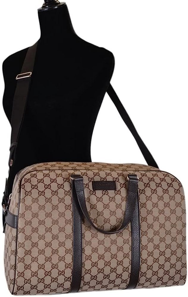 • A favorite Gucci travel piece this large beige and brown canvas Gucci GG canvas duffle bag will make your next trip a breeze. This roomy luggage piece has room for clothes, shoes, and toiletries. Model 610105