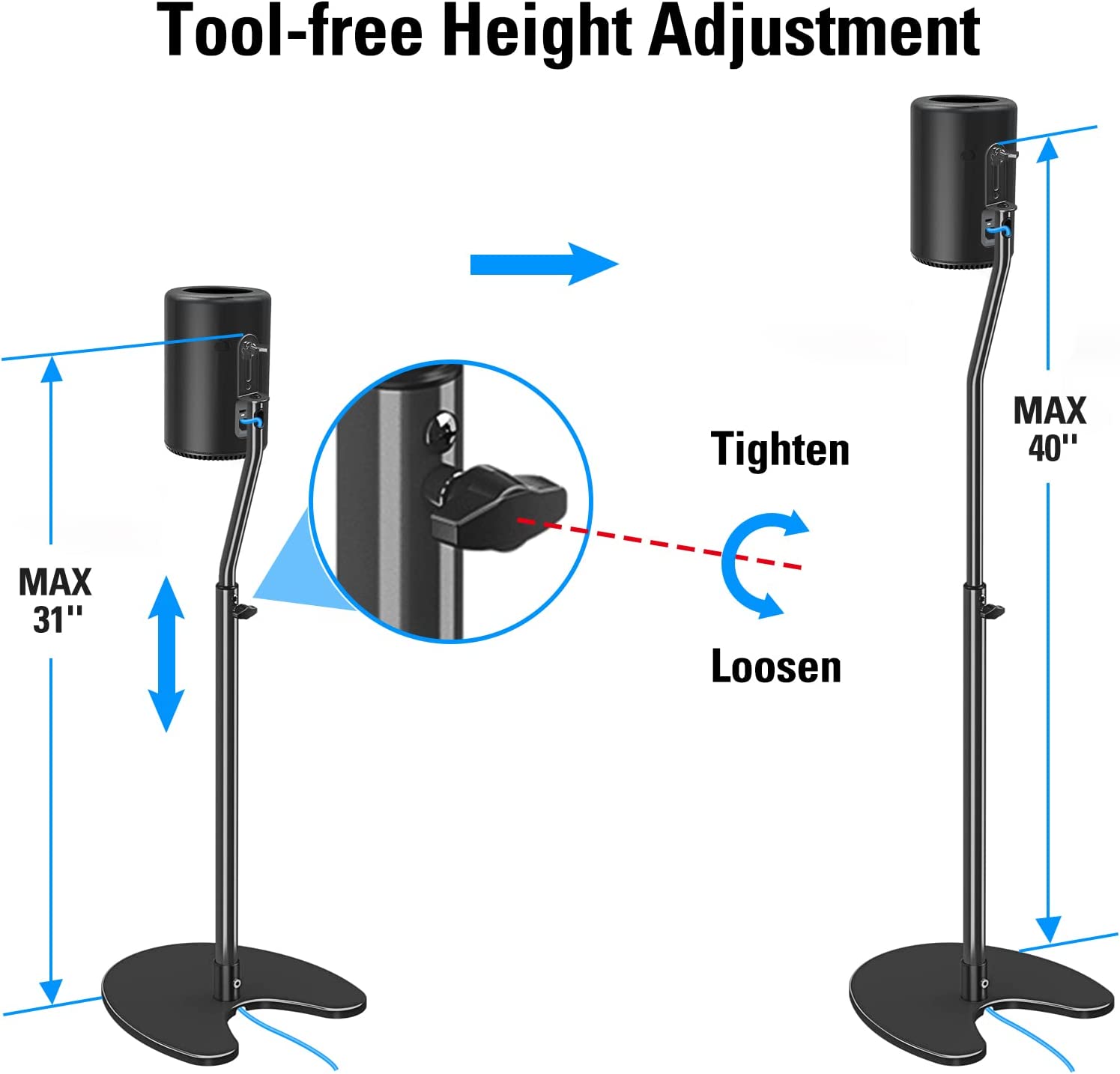 Mounting Dream Height Adjustable Speaker Stands Mounts, One Pair Floor Stands, Heavy Duty Base Extendable Tube, 11 LBS Capacity Per Stand, MAX 40" Height Adjustment MD5401 (Speakers Not Included)