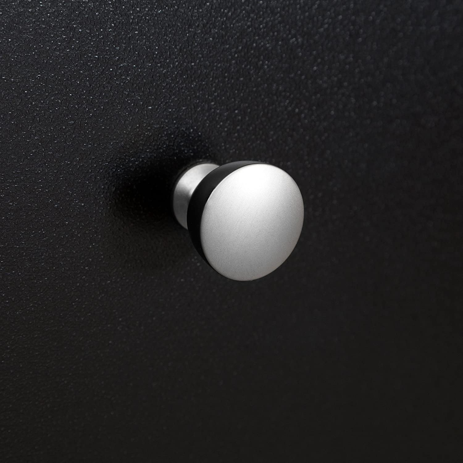 • ADJUSTABLE DESIGN: The minimalist cabinet features 2 storage spaces separated by an adjustable shelf which is all neatly concealed behind 2 sleek doors with metal knobs.