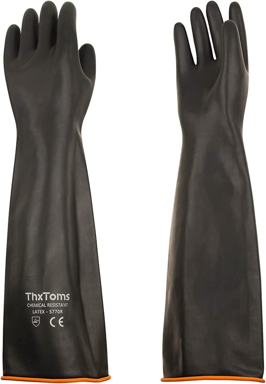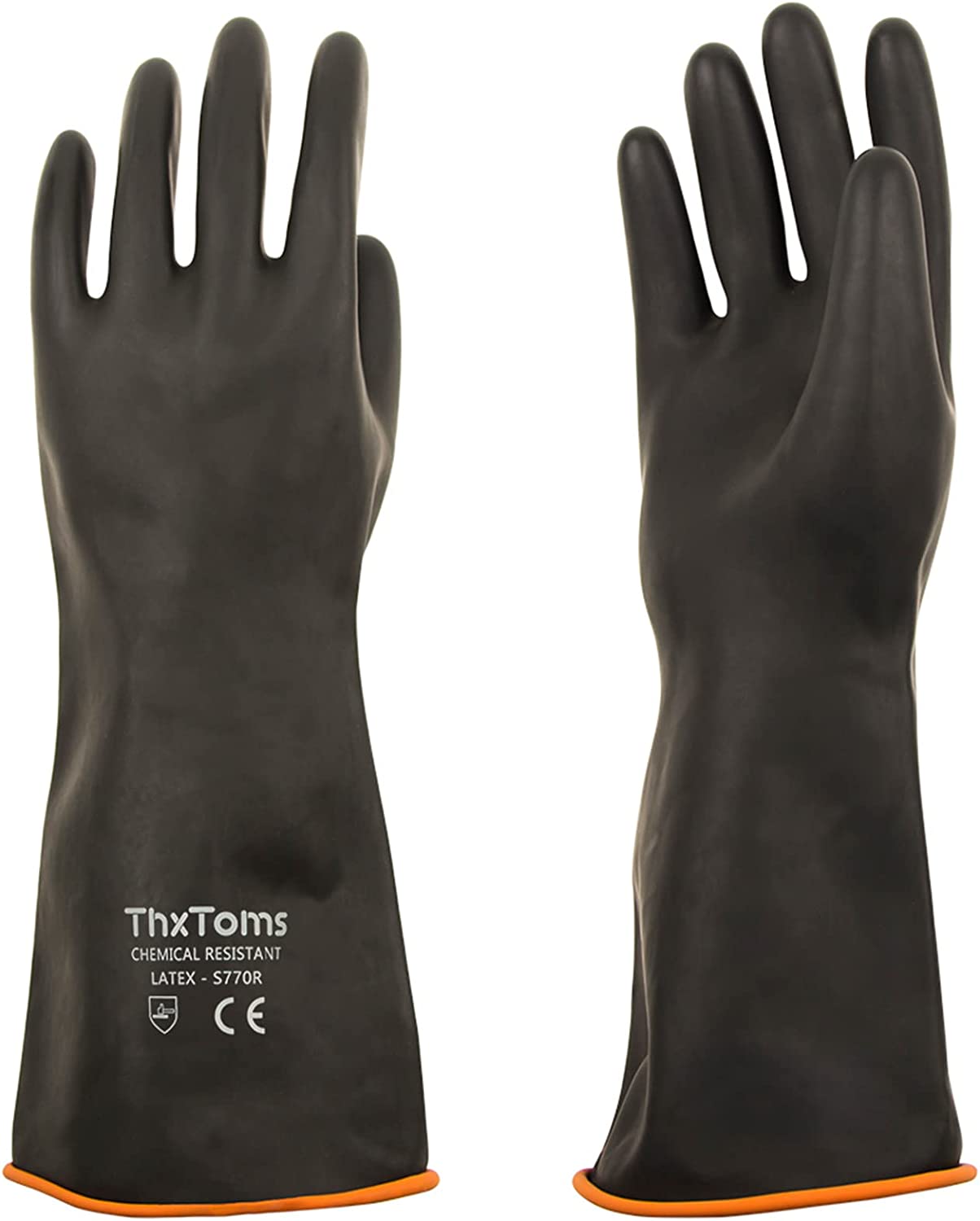 ThxToms Heavy Duty Latex Gloves, Resist Strong Acid, Alkali and Oil, 14", 1 Pair