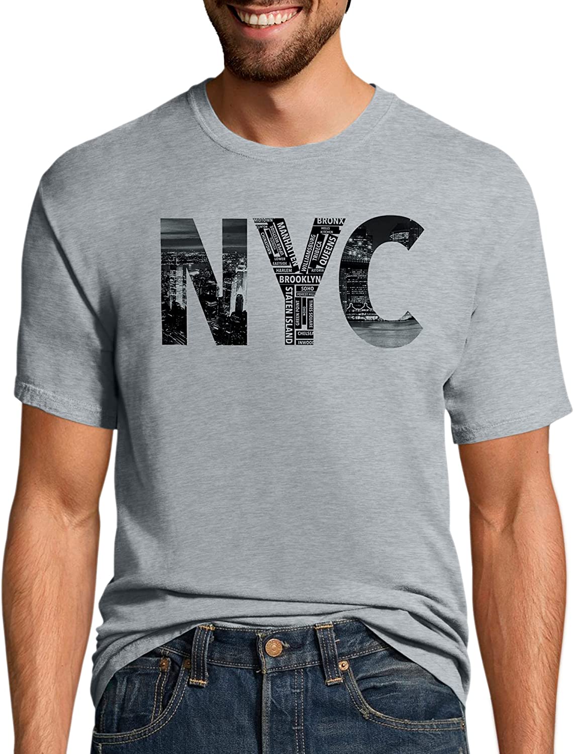 KLIEGOU Mens 100% Cotton Hipster Hip Hop Longline Crewneck T-Shirt S-4XL