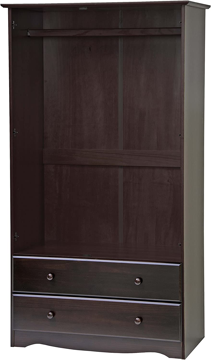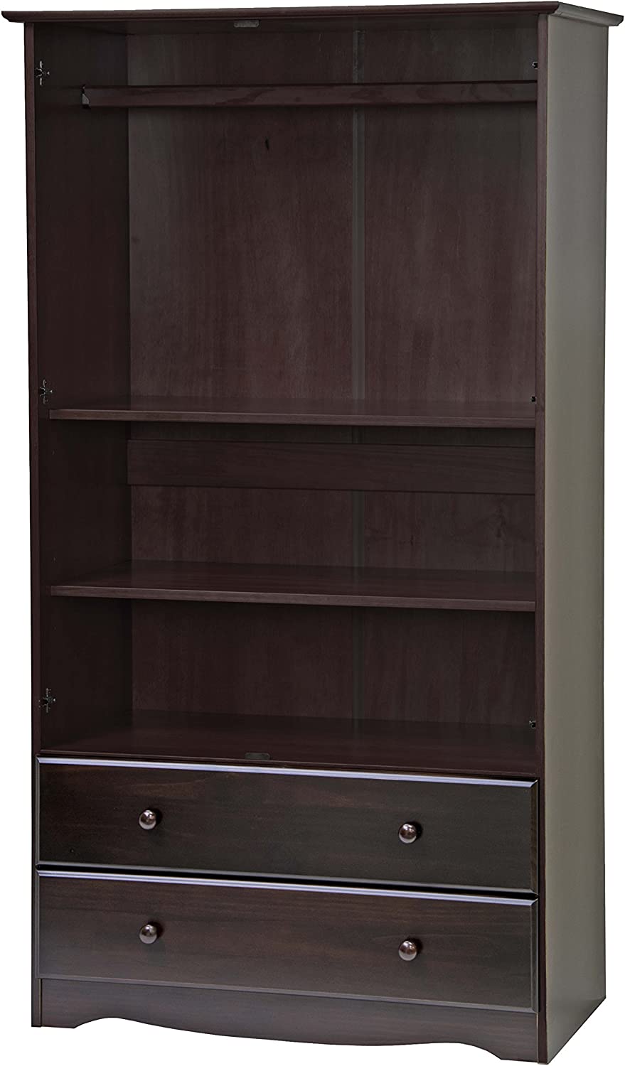 Palace Imports 100% Solid Wood Smart Wardrobe/Armoire/Closet, Java Color, 40" W x 72" H x 21" D, 1 Clothing Rods, 1 Lock, 2 Drawers Included