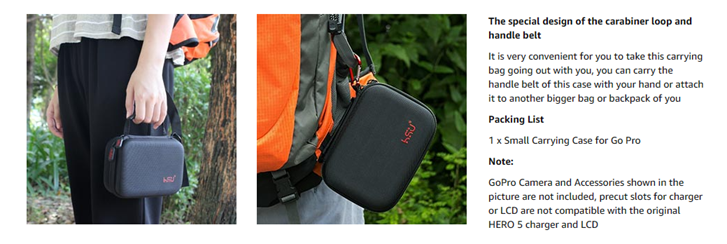 • With a carry handle and a CNC carabiner loop, so it is easy to carry with your hand or attach to a belt or larger bag,Elastic Mesh Pocket provides extra storage for your GoPro camera and accessories