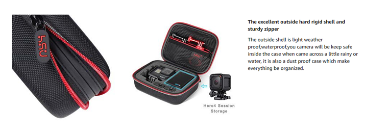• Small Carrying Case for GoPro is a portable case with compact size for GoPro Enthusiasts, put your GoPro Action Camera and camera accessories into the Small Carrying Case when you are playing the action sports
