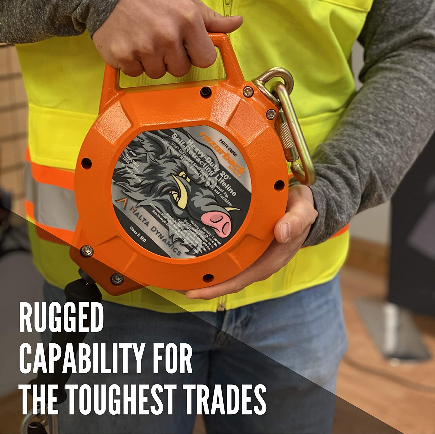 • SAFETY & VERSATILITY: Our Malta Dynamics Razorback Heavy-Duty Self-Retracting Lifeline is designed to meet or exceed ANSI and OSHA SRL standards, providing outstanding performance and dependability. This SRL can support an ANSI rated worker weight capacity of 130-310lbs and is suitable for overhead use only