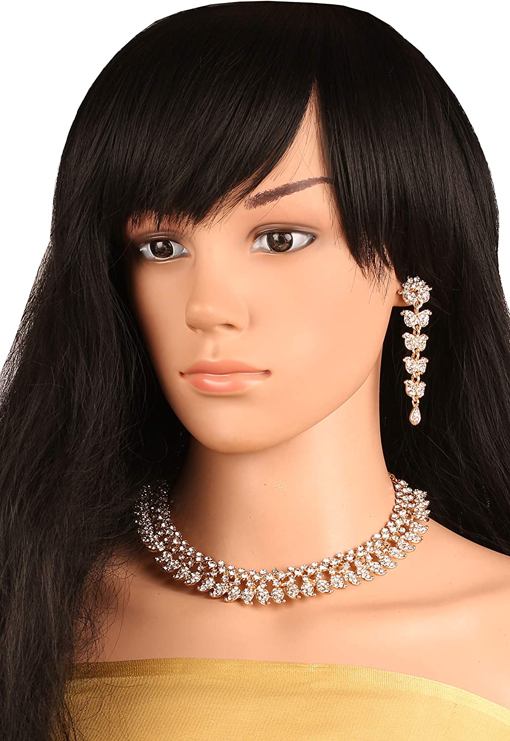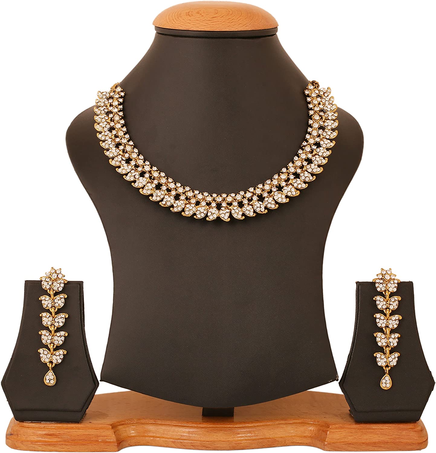 Touchstone Hollywood Glamour white crystals paisley motif grand jewelry necklace in antique tone for women EXTRA LONG EARRINGS. Length 3 inches SPECIFICATIONS : Necklace Circumference : 13 Inches. Extendable Adjustable With Extra Links/Chain Up To 18 Inches. Earrings Weight (Single) 7 gms. Earrings Length 3 Inches. Earrings Width 0.50 Inch.