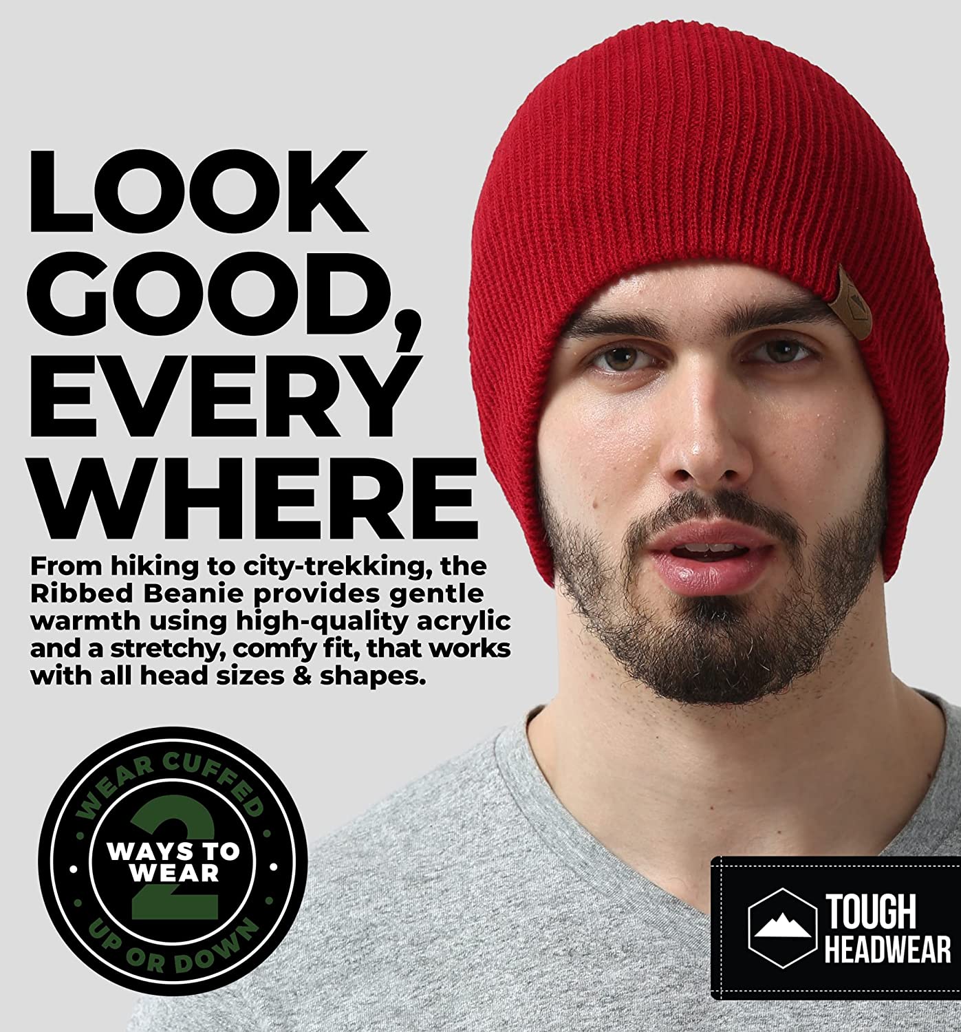 RIBBED FOR PERFECT FIT: Leave your beanie fit struggles behind! The premium beanie men love features a ribbed design that stretches to fit all noggins–yes even the large ones. Our one-size-fits most beanie hats for men and women has your active lifestyle in mind, with 4-way stretch, so you can stay comfy all day long. Sized at 8” (21cm) width by 9” (23cm) tall, for both men and women.