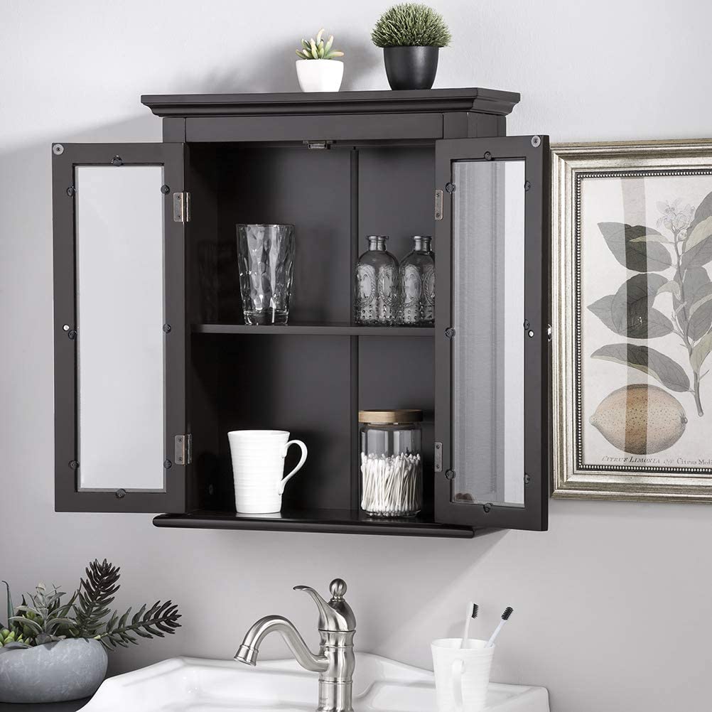 • MODERN DESIGN - The cabinet comes with an espresso finish to provide a modern element to the design. Vintage metal handle knob make it easy to open and close. Crown molding on the top of the unit gives it a grace style that will go with most any decor.
