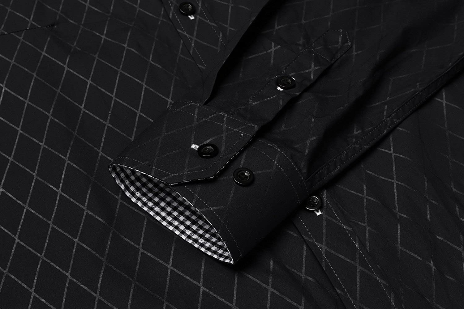 - Features: Slim fit button down shirt, solid color, obscure plaid pattern, contrast color plaid collar and cuff,long sleeve button collar dress shirt