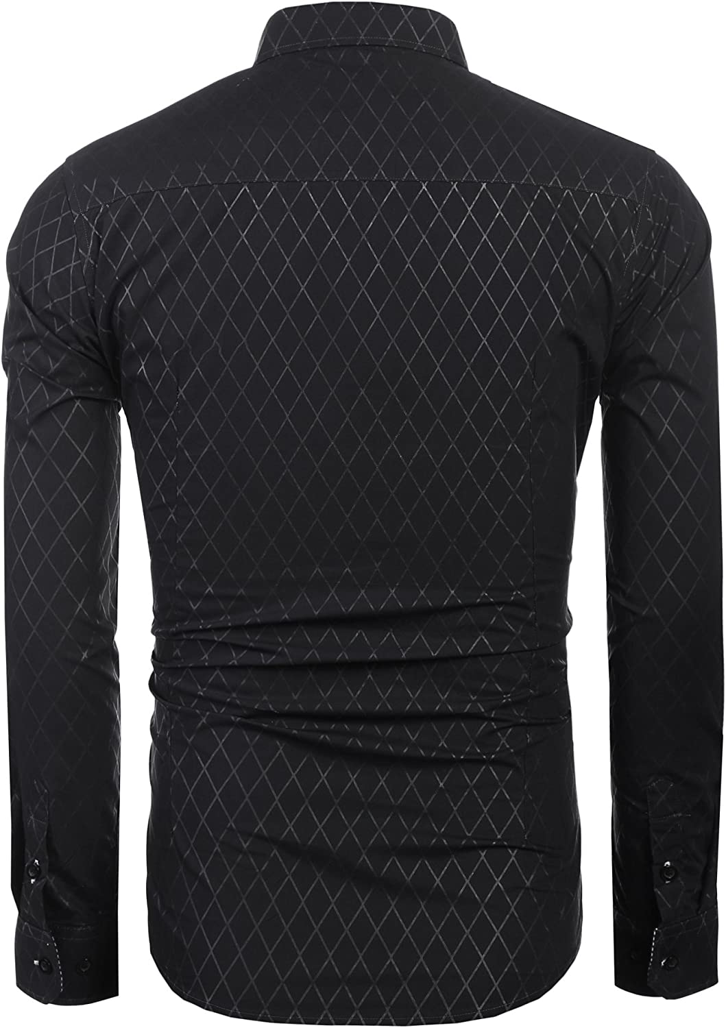 These slim fit shirts are made of cotton blend, soft & comfortable. Long-sleeve casual shirt featuring button-down collar, obscure diamond pattern, plaid french cuffs, hip length. Slim, tailored and classic button down shirts suit for daily look, working, wedding, holiday, all seasons and occasions.