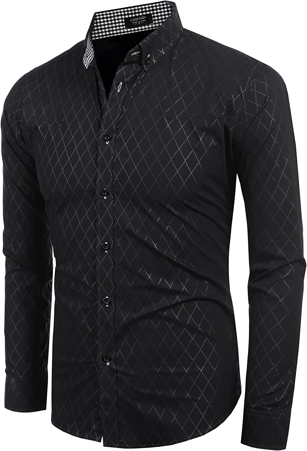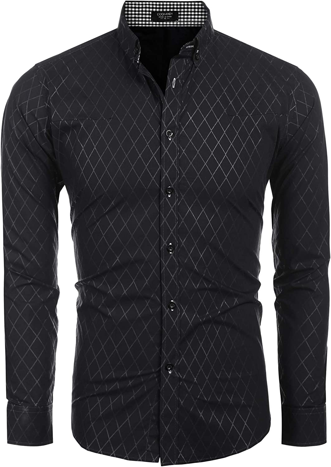 COOFANDY Men's Slim Fit Dress Shirts Long Sleeve Plaid Button Down Collar Shirt