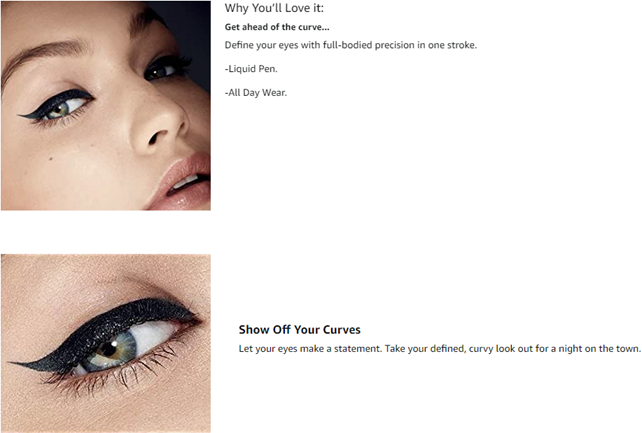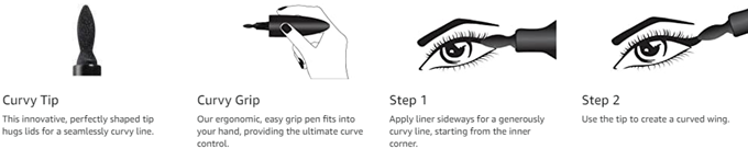 Now, you control the curve! This liquid eyeliner features an easy grip pen to provide the ultimate control in application. Maybelline’s patent pending tip, hugs lids for a seamless curvy line. • Patent pending tip hugs lids for a seamless curvy line • Our exclusive easy grip pen provides ultimate curve control • All-day wear • Step 1. Apply liner sideways for a generously curvy line, starting from the inner corner. Step 2. Use the tip to trace a curved wing.