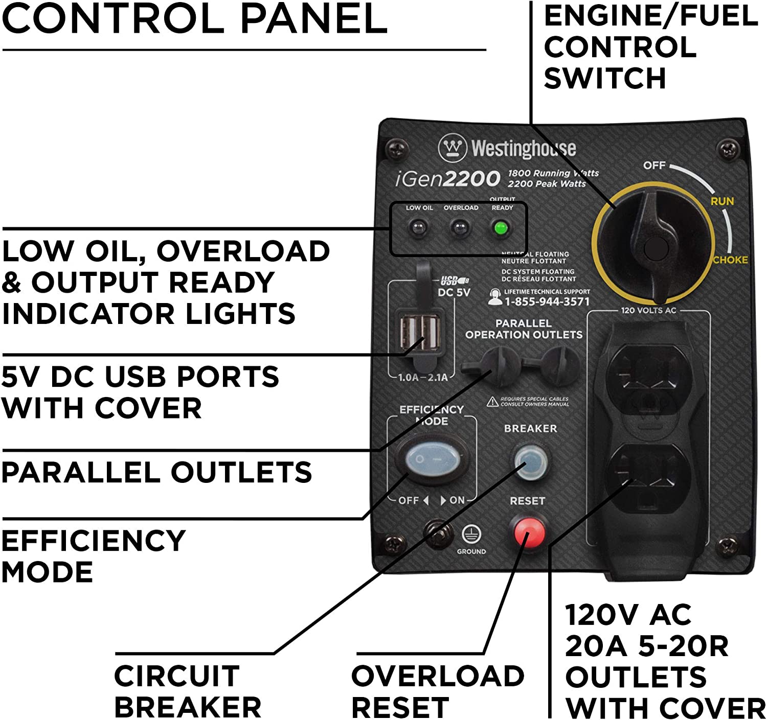 Parallel Capable - Combine Your iGen2200 with the Westinghouse WH2200iXLT; iGen1200; iGen2200; and iGen2500 to Increase Available Wattage and Amperage (Requires Westinghouse Parallel Cord)