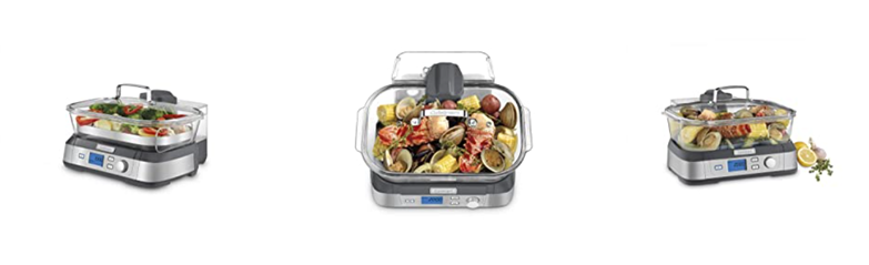 Consumers looking for a healthy way to cook will love Cuisinart's new Cook Fresh Digital Glass Steamer. A powerful steam system delivers steam from the top down, surrounding food to cook quickly and evenly. The 5-liter glass cooking pot is large enough for family-size portions of vegetables, fish, chicken, rice and more. And the steamer's 1-liter water tank conveniently lifts off to fill. Healthy cooking is today's biggest trend, and this new glass steamer from Cuisinart makes it quick and easy. Features: Powerful steam system|5L dishwasher-safe glass pot|5 preprogrammed food settings: seafood poultry grains vegetables and manual|60 minute countdown timer|LCD control panel|Audible alert|Start/Stop Pause & Reheat buttons|1L removable water tank|Stainless steel steaming tray flips to hold different types of food|Glass lid with stainless steel rim|Limited 3 year warranty|BPA-free